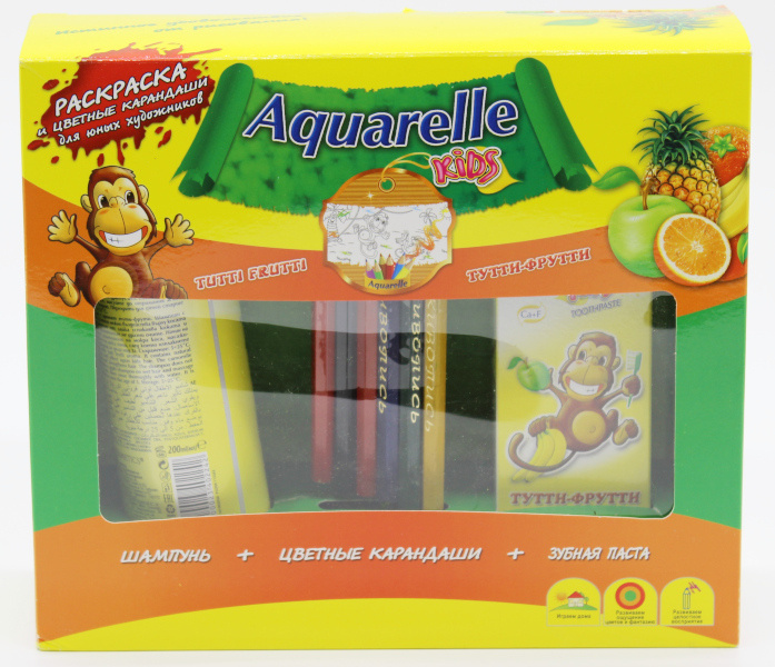 Подарочный набор для детей AQUARELLE KIDS Тутти-Фрутти (зубная паста, шампунь, цветные карандаши)
