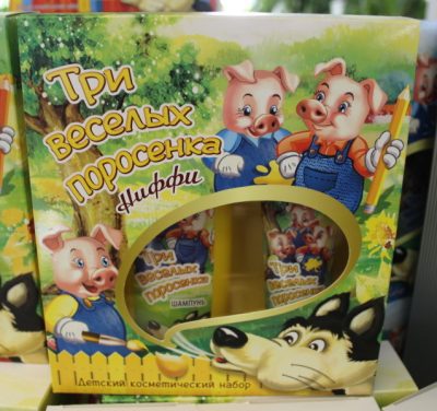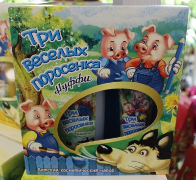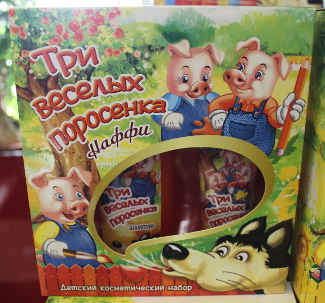 Детский подарочный косметический набор Три веселых поросенка — Наффи (мыльная краска для купания красная, шампунь) для детей от 3 лет