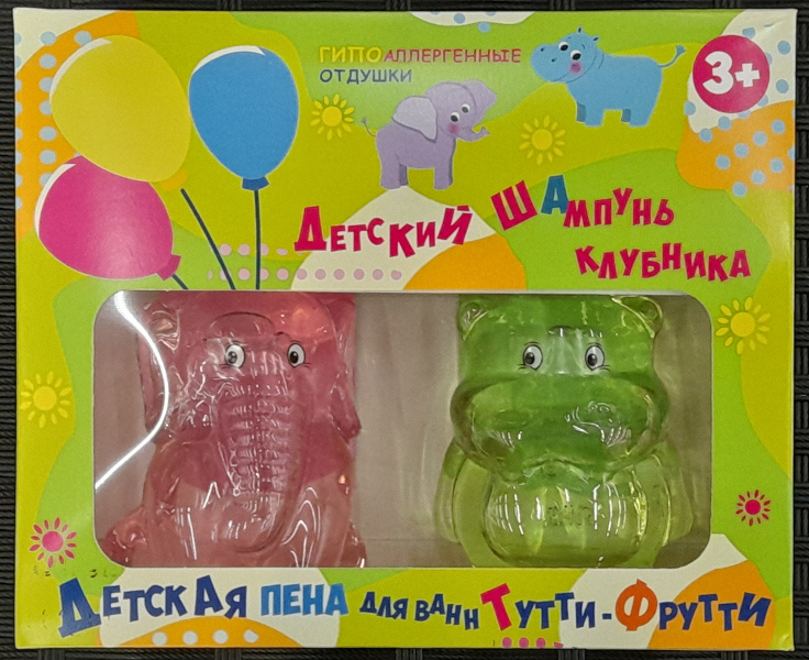 Подарочный набор детский BN-2402 «Слоник» Тутти-Фрутти (детский шампунь с ароматом Клубника 180 см и детская пена для ванн 180 мл)