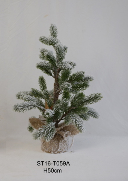 Ёлка искусственная 50 см зелёная заснеженная в джутовой основе (ель 0.5 м, 059A) (отдел Елка искусственная)