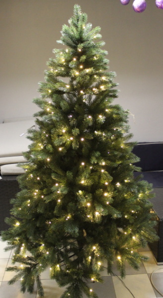 Ёлка искусственная 210 см зелёная со встроенной гирляндой с лампочками «как настоящая» (ель 2.1 м светодиодная LED, 1208 веток, HJT06-210 000733) (отдел Елка искусственная)