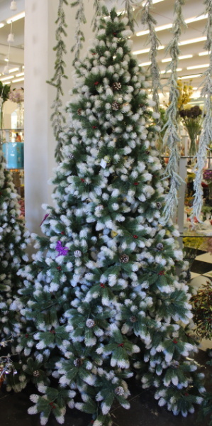 Ёлка искусственная 270 см зелёная с белыми кончиками и шишками «как настоящая» (ель 2.7 м, 2442 ветки, HJT01-270 000728) (отдел Елка искусственная)