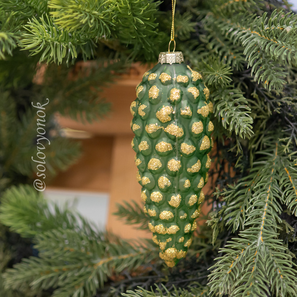 YQX5075-1G Шишка большая зеленая с золотом 049407