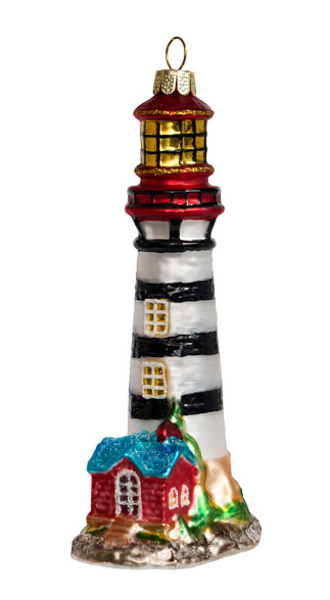 Елочная игрушка Маяк Санторини, стекло, 6,5х5х14 см, стеклянная подвеска на елку 1003 (отдел елочная игрушка, подвеска на елку)