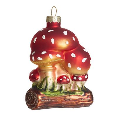 Елочная игрушка Гриб Мухомор, стекло, 7х5х9 см, стеклянная подвеска на елку 1696 260294 (отдел елочная игрушка, подвеска на елку)