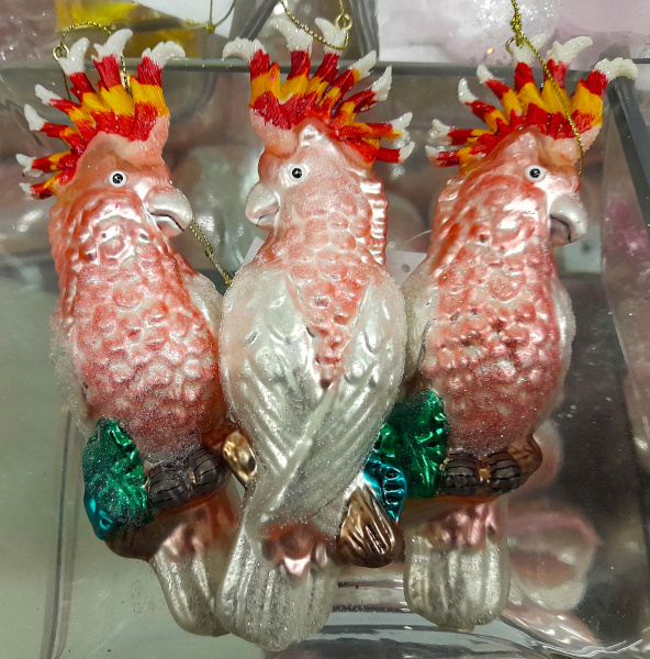 Ёлочная игрушка подвеска Попугай Какаду розовый (стекло), в ассортименте, 5,5х3,5х16,5 см, 203615 036159 (отдел елочная игрушка, подвеска на елку)