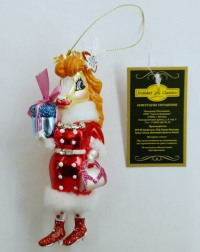 Елочная игрушка Лошадь «Леди с подарками», стекло, 5х3,5х13,5 см, подвеска на елку 253987 539872 (отдел елочная игрушка, подвеска на елку)