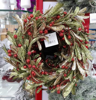 Венок новогодний зелёный золотистый с красными ягодами 32S11792