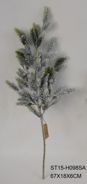 Ветка ели искусственная новогодняя 67 см в снегу (098SA)