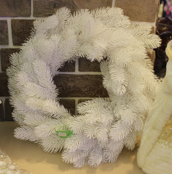 Венок еловый искусственный новогодний из веток ели 50 см белый (09-50 000740)