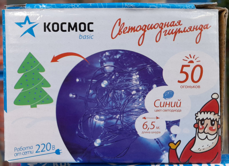 Светодиодная гирлянда Космос 50 светодиодов, цвет синий, 6.5 м, 8 режимов, 220 вольт, электрическая