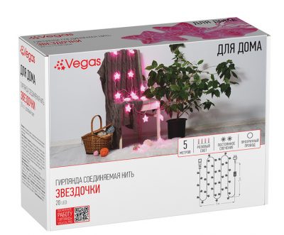 Электрогирлянда Нить «Звездочки» 20 розовых LED ламп прозрачный провод соединяемая 55176