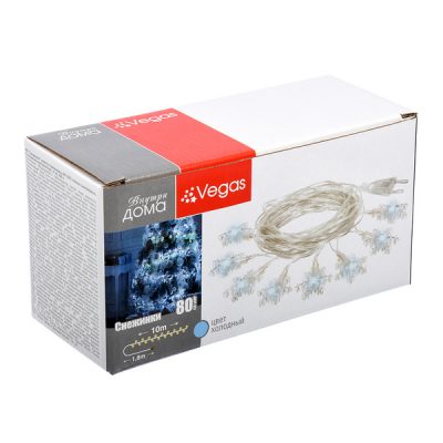 Электрогирлянда «Снежинки» 80 холодных LED ламп прозрачный провод 10м 220v 55082