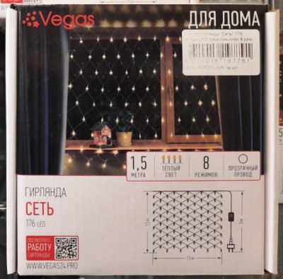 Электрогирлянда «Сеть» 176 холодных LED ламп кон-ллер 8 реж прозр провод 2*1,5м 220v 55075