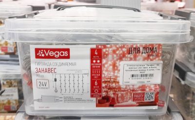 Электрогирлянда «Занавес» 1 на 4 м, с блоком питания, 192 красных LED ламп, в боксе, прозрачный провод, 6 нитей, соединяемая, 55207