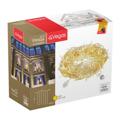 Электрогирлянда-конструктор «Занавес» 96 желтых LED ламп 6 нитей прозрачный провод 1*2м 24V 55022