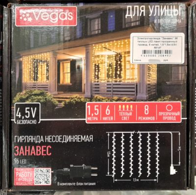 Электрогирлянда-конструктор «Занавес» 96 теплых LED (18 миг)ламп 6 нитей прозр провод 1*2м 24V 55023