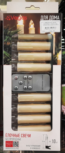 Ёлочные свечи беспроводные с пультом управления, набор 10 шт., 1,8х10 см тёплое свечение 55118