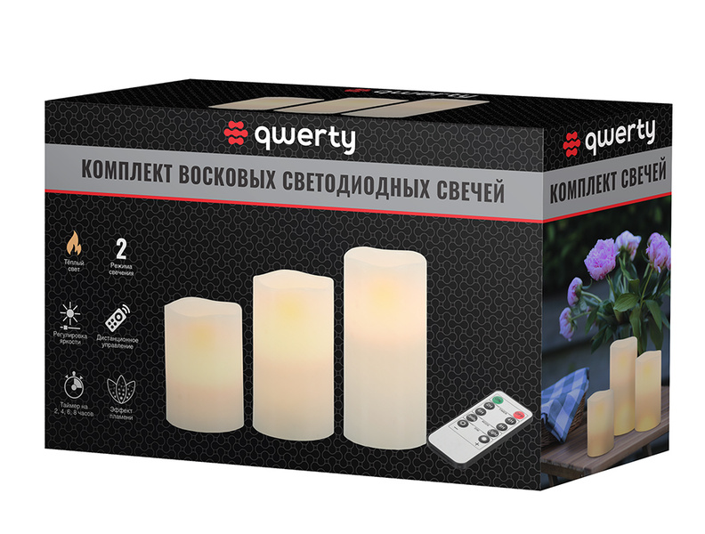 Набор многофункциональных светодиодных свечей воск 7,5х8,5см 7.5х11,5см, 7,5х15см без батареек 75014