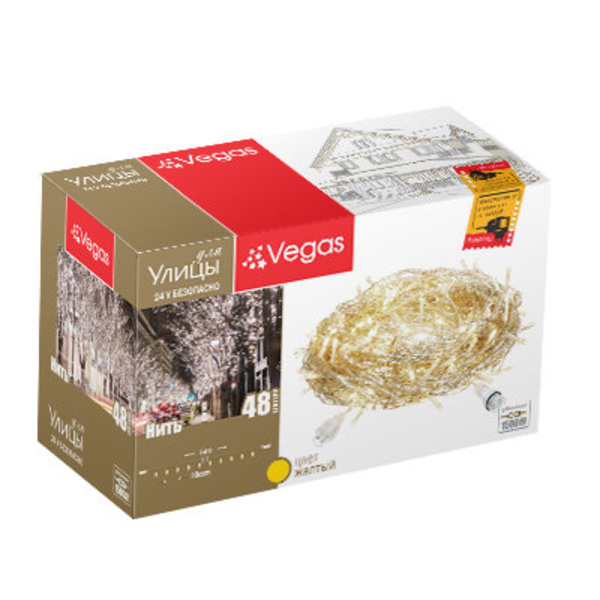 Электрогирлянда-конструктор «Нить» 48 желтых LED ламп прозрачный провод 5м 24V 55004
