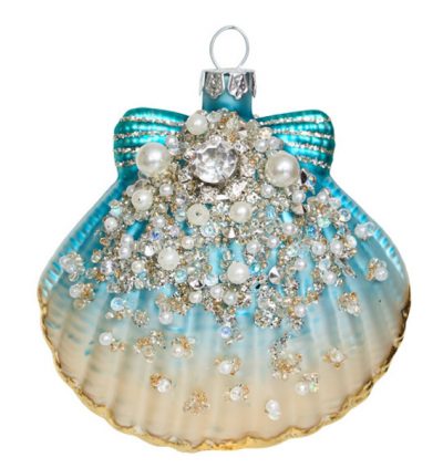 530 Ракушка Жемчужница перламутровая бирюза двусторонняя (стекло) 9х5х9,5см (отдел елочная игрушка, подвеска на елку)