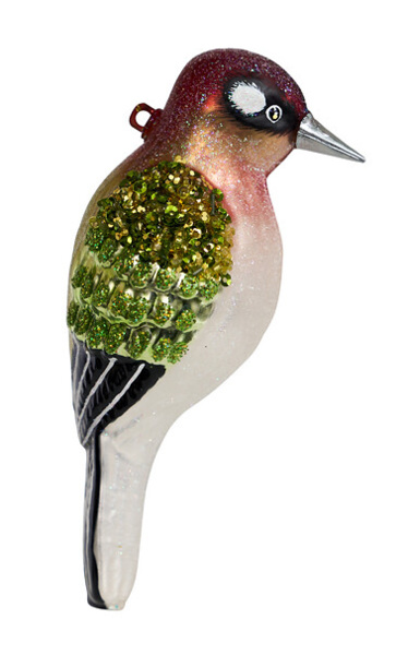 1103 Дятел зеленый (стекло) 5х5х12,5см (отдел елочная игрушка, подвеска на елку)