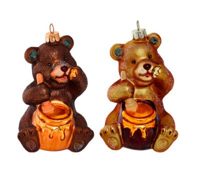 684 Медвежонок с бочонком меда, асс. из 2-х (стекло) 7х6,5х11см (отдел елочная игрушка, подвеска на елку)