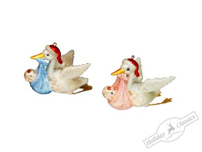 04079 Аист с младенцем, асс. из 2-х, 8,5см (отдел елочная игрушка, подвеска на елку)