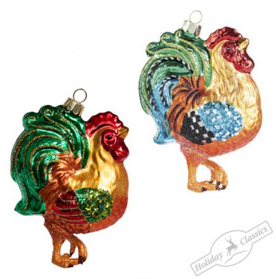 1032 Петух асс. из 2-х (стекло) 7,5х5х11см (отдел елочная игрушка, подвеска на елку)