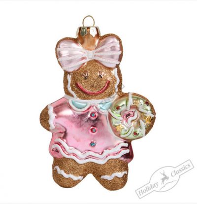 233075 Пряник-девочка с бантом (стекло) 9х3,5х12см 330752 (отдел елочная игрушка, подвеска на елку)