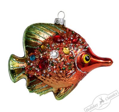 84341 Рыба «Владычица морская» золотая (стекло) 11,5х4,5х9см (отдел елочная игрушка, подвеска на елку)