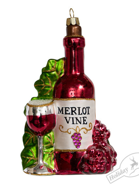 1128 Мерло с бокалом (стекло) 8,5х5,5х14см (отдел елочная игрушка, подвеска на елку)