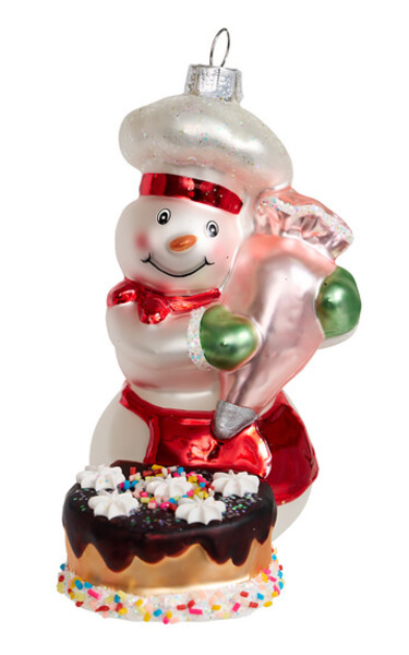 974 Шеф-кондитер «Снеговик» (стекло) 5,5х9х11,5см 249978 (отдел елочная игрушка, подвеска на елку)