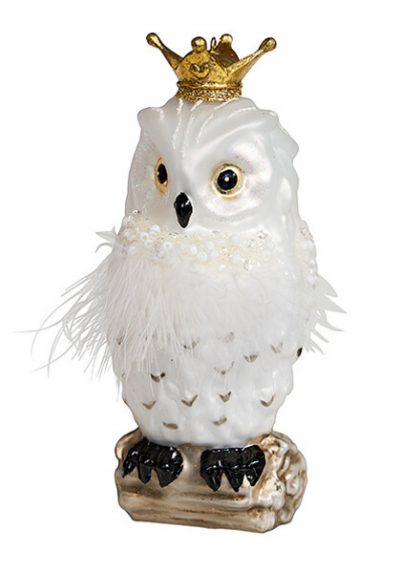 038 Сова Полярная (стекло) 8х7,5х12,5см 232628 (отдел елочная игрушка, подвеска на елку)
