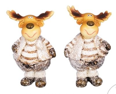 17106 Лось серебристо-шоколадный в полосатой фуфайке малый, асс из 2-х с подарком/конфетой 3х2,5х6см (отдел елочная игрушка, подвеска на елку)