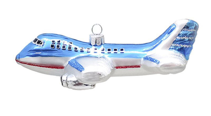 525 Самолет 13,5х7,5х4см стекло 212064 (отдел елочная игрушка, подвеска на елку)