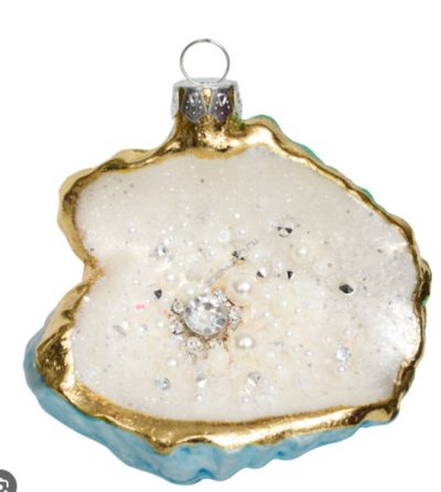 244883 Ракушка с жемчужинками перламутровая бирюза (стекло) 9х5х9см (отдел елочная игрушка, подвеска на елку)