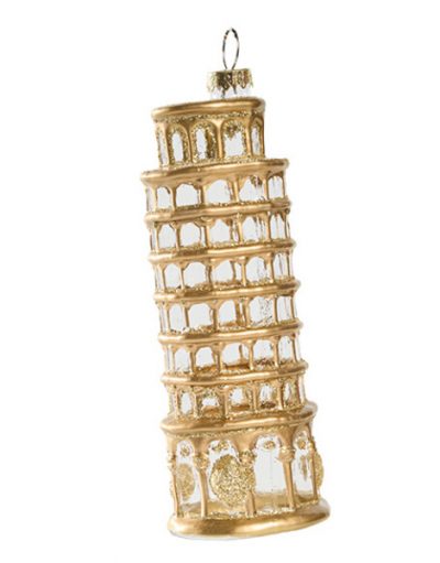 528 Пизанская башня прозрачно-золотая (стекло) 4,5х4,5х13см (отдел елочная игрушка, подвеска на елку)