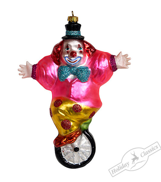 34552 Клоун на моноцикле (стекло) 9х5х12,5см (отдел елочная игрушка, подвеска на елку)