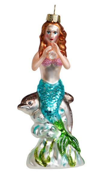 1124 Русалка с дельфином (стекло) 5,5х3,5х15,5см (отдел елочная игрушка, подвеска на елку)