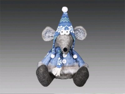 Мышь в голубом свитере и шапочке с ушками сидящая, 23-35 см AH646