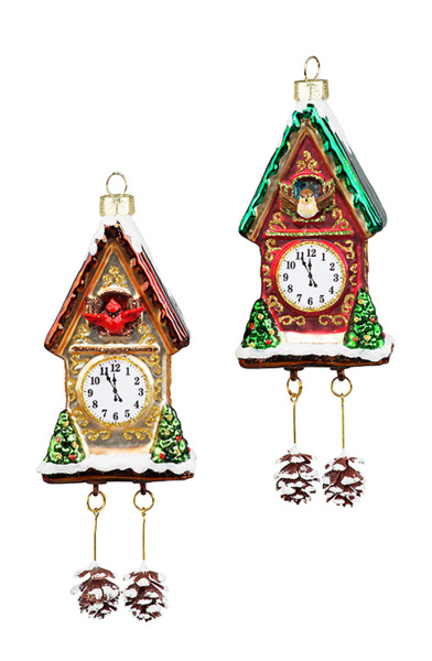 450 Часы-ходики «Лесная сказка» асс. из 2-х (стекло) 5,7х3х15см (отдел елочная игрушка, подвеска на елку)