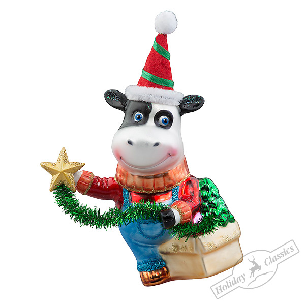 204908 Бычок «Канун рождества» (стекло) 9х5,5х14 см (отдел елочная игрушка, подвеска на елку)