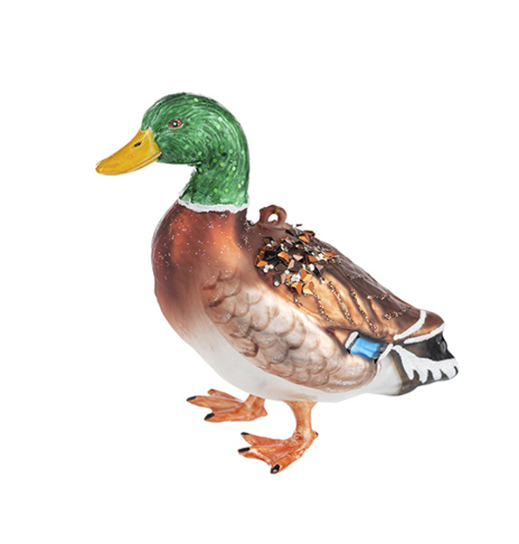 572 Селезень (стекло) 12х5х9см 212392 (отдел елочная игрушка, подвеска на елку)