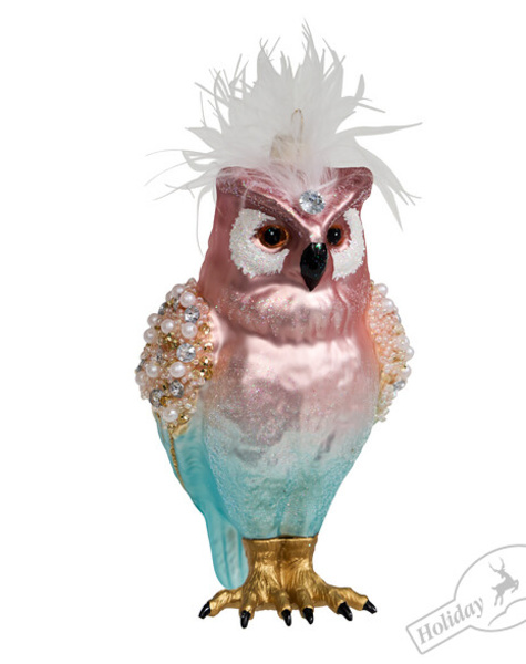 1017 Сова «Райский сад» (стекло) 9х8,5х15,5см (отдел елочная игрушка, подвеска на елку)