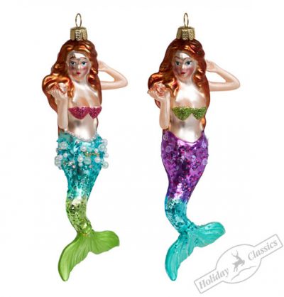 1125 Русалка с ракушкой, асс. из 2-х (стекло) 7х3х16,5см (отдел елочная игрушка, подвеска на елку)