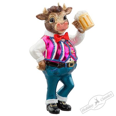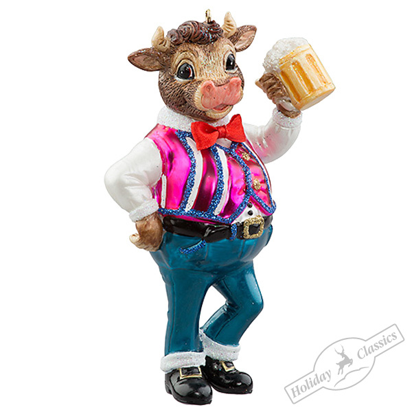204937 Бычок «Октоберфест» (стекло/полистоун) 8х5,5х12,5 см (отдел елочная игрушка, подвеска на елку)