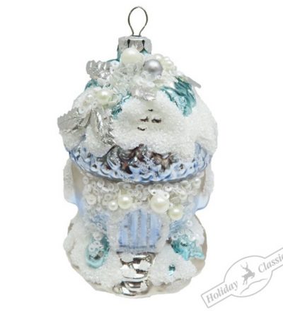 243109 Домик-грибочек «Снежный лес» (стекло) 7,5х7,5х11,5см (отдел елочная игрушка, подвеска на елку)