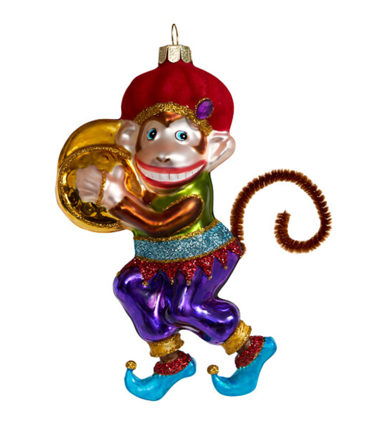 1043 Обезьяна «Восточный танец» (стекло) 7х4,5х13см (отдел елочная игрушка, подвеска на елку)