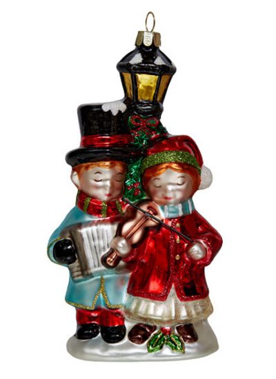 724 Поющие дети у старинного фонаря (стекло) 8х5х15,3см (отдел елочная игрушка, подвеска на елку)